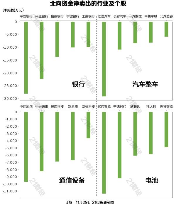 据21投资通智能监测,11月29日,北向资金净卖出50.8亿元,其中沪股通净卖出19.84亿元,深股通净卖出30.96亿元。