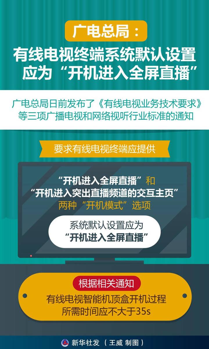 一台智能电视差点把老人逼疯的事情,今后恐怕要成为历史了。据报道,11月27日,国家广电总局组织审查了《有线电视业务技术要求》等广播电视和网络视听行业三项标准文件,予以发布。要求有线电视终端应提供“开机进入全屏直播”和“开机进入突出直播频道的交互主页”两种“开机模式”选项,系统默认设置应为“开机进入全屏直播”。