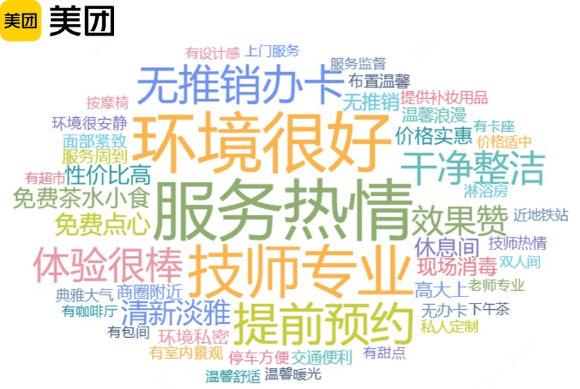 ▲美团平台美容美体行业消费评价关键词。