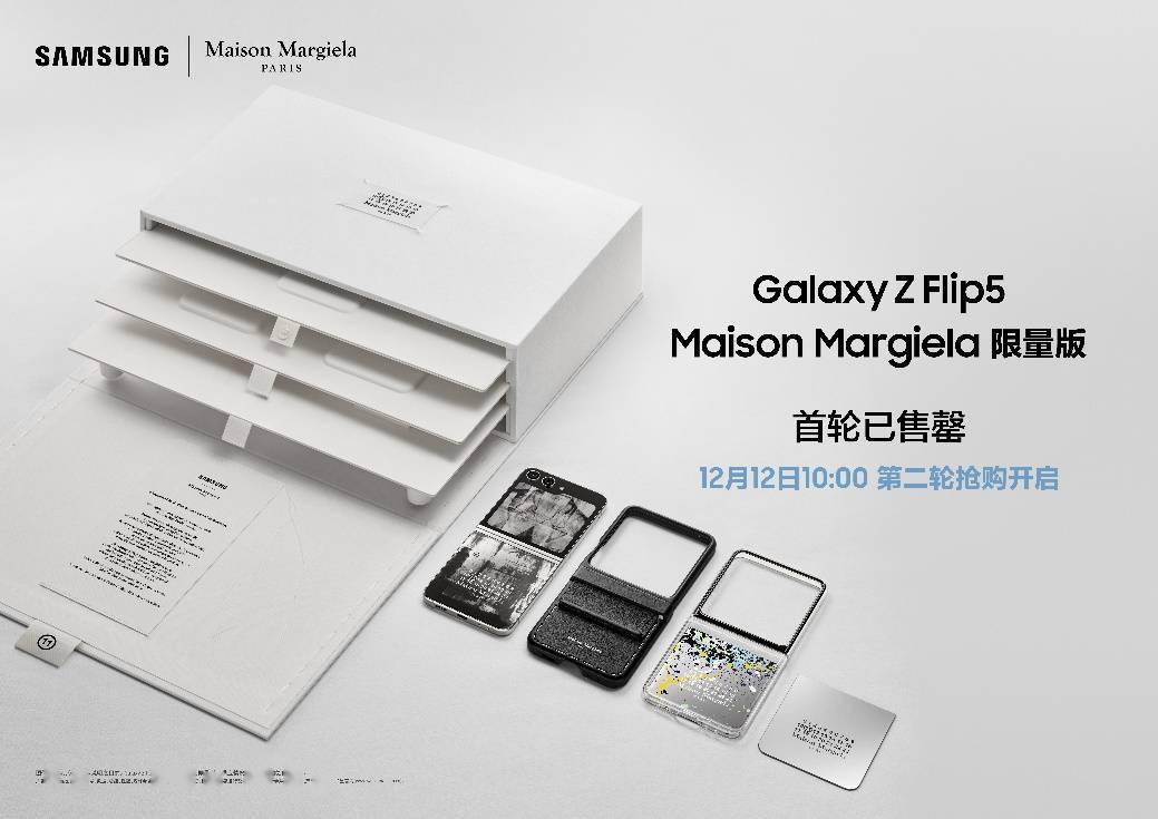 11月30日上午10:00,三星与Maison Margiela 再度携手打造的三星Galaxy Z Flip5 Maison Margiela限量版正式限量发售。这款将科技与时尚巧妙融合的联名产品再次引发了时尚圈与科技圈的热烈追捧,三星商城、天猫三星官方旗舰店、三星京东自营官方旗舰店等渠道在限量发售开启后便迅速售罄。在宣布售罄的同时,三星也公布了第二轮抢购活动的信息,本轮未能入手的朋友,可锁定12月12日上午10:00参与下轮抢购,届时一定要抓住入手这款联名新品的机会。