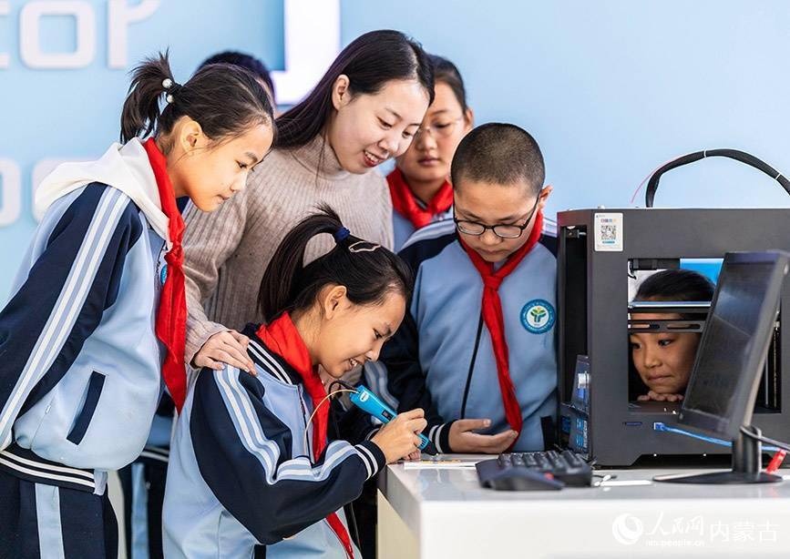 11月30日,呼和浩特市玉泉区南柴火市街小学学生在使用3D打印笔绘制立体图案。丁根厚摄