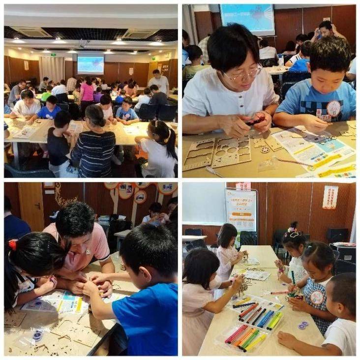 在老师和家长的帮助下,孩子们迫不及待地拆开包装袋,寻找着合适的小零件,小心翼翼地将LED灯线路进行组装。“爸爸,你的线路接反了”“晓晓,你拼错了,应该是这片”“妈妈,你没有把这个放大镜组装上去”“奶奶,您看这个灯亮了”……在家长和孩子们不断探索和相互合作中,他们突破重重困难,完成了对自我的挑战,一台台“老式放映机”顺利组装成功。