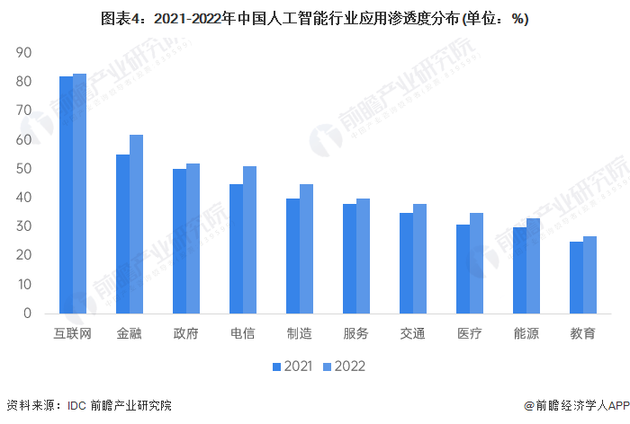 人工智能行业应用渗透度排名