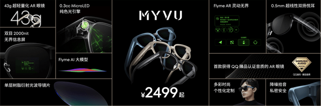 MYVU AR 智能眼镜还搭载了最新发布的 Flyme AI 大模型,基于 AI 大模型和传统语音能力深度融合,具备丰富且实用的语音应用,重新定义个人语音助理,全天候解决用户的生活和工作难题;还能为用户提供全能问答、旅游攻略、生活助手、健康生活等日常功能,甚至知识技能、职场发展、商业分析等专业服务也不在话下,是最好的个人助理载体。