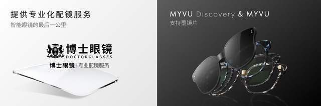 值得一提的是,MYVU 品牌还与博士眼镜携手合作,并通过博士专业化配镜服务,为 MYVU 用户提供多种近视镜片选择,满足不同用户的使用需求。