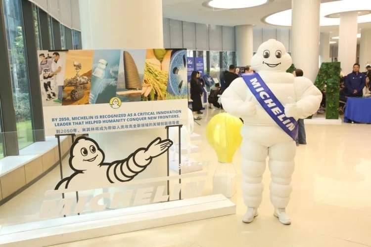 63%可持续材料的轮胎、未来世界“明日之境”……11月28日,伴随着经典可爱的米其林轮胎先生亮相,“从进博会到大零号湾——米其林的绿色低碳之旅主题展”启动仪式,在大零号湾图书馆举行。