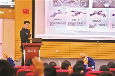 本报讯(记者解丽)“在太空中以超过七公里每秒的速度运行的空间站是如何与飞船对接的?”“航天员在空间站生活6个月,大概需要用多少水?这些水又是怎么来的?”“空间站中航天员为啥要坚持健身?”“空间站如何躲避太空垃圾的撞击?”……近日,北京科技中心报告厅内,来自北京市第十二中学初中一年级的130余名学生,与中国空间站的设计师展开了一场别开生面的问答对话。