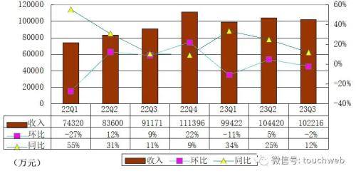 知乎2023年第三季度营收为10.22亿元(1.4亿美元),较2022年同期的9.12亿元增长12.1%,较上一季度的10.44亿元下降2%。