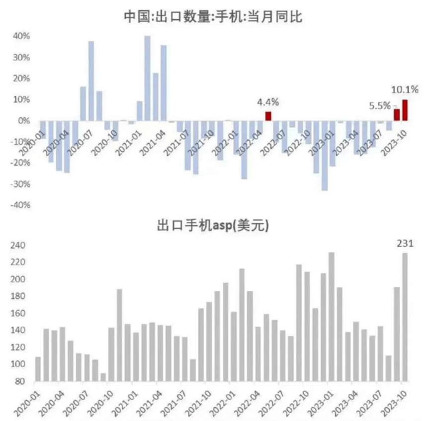 海关的数据也显示出了手机行业回暖的迹象。自2022年6月手机出口数据连续15个月出现负增长之后,目前已经有连续两个月回正,单月出口平均销售均价(ASP)达231美元,也创下近三年新高。