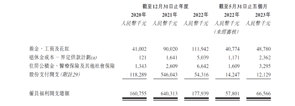 除了销售成本逐年走高,国鸿氢能费用支出中,行政开支占比最大且逐年递增。行政开支从2020年1.5亿增长至2022年的1.81亿,其中2021年高达6.16亿,三年共计近10亿。高昂的行政开支源于公司的股份支付及股权激励,2020-2022年股份支付分别为1.18亿元,5.46亿元,0.54亿元,主要被授予若干董事,高级管理及其他员工,以高层管理人员为主。