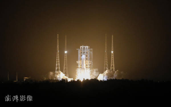 2020年11月24日4时30分,我国在中国文昌航天发射场,用长征五号遥五运载火箭成功发射探月工程嫦娥五号探测器。澎湃影像资料图