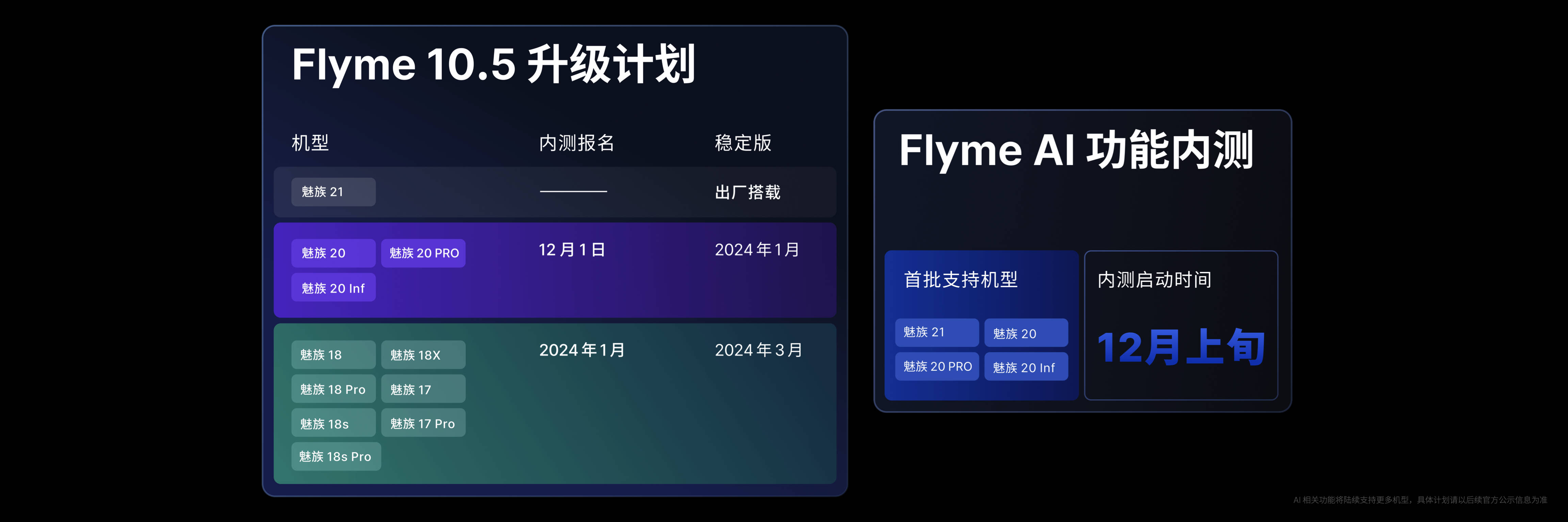 魅族21首发搭载Flyme10.5,其他机型还在陆续适配中。