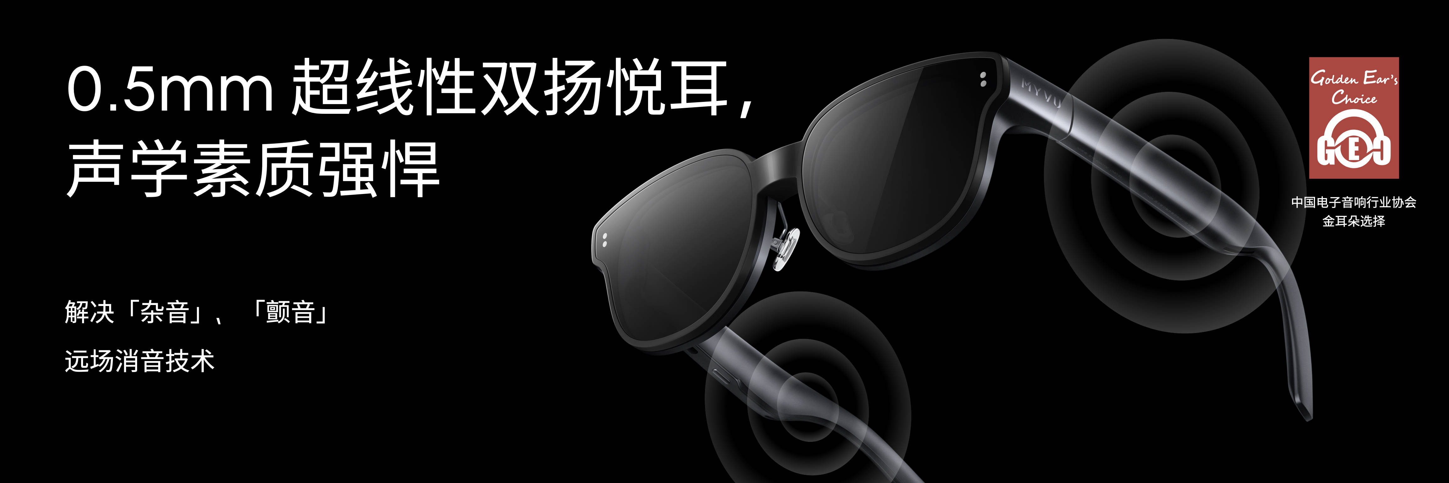在声学方面,MYVU在小体积下依然保持了魅族一如既往的高要求,解决开放式音频眼镜带来的的杂音、颤音情况,同时也是首款通过QQ音乐臻品认证的AR眼镜。