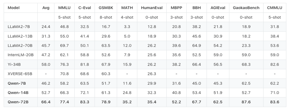 通义千问720亿开源模型部分成绩超越闭源的GPT-3.5和GPT-4