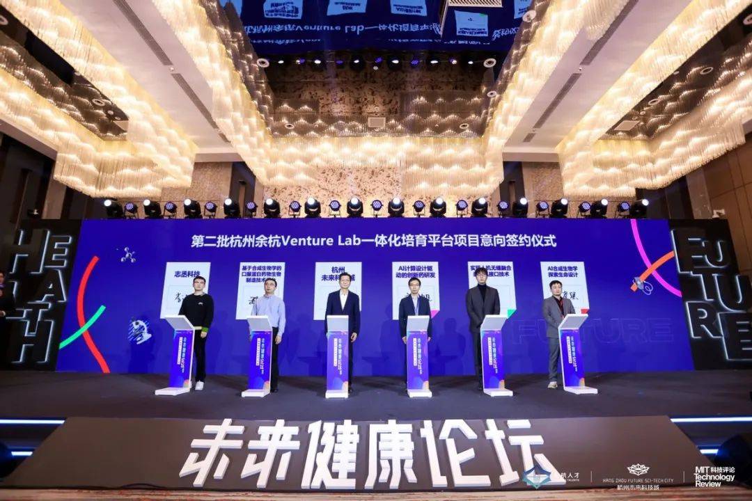 与这些期许和希冀一脉相承,本次论坛上还举行了第二批杭州余杭 Venture Lab 一体化培育平台项目意向签约仪式,“志丞科技”、“基于合成生物学的口服蛋白药物生物制造技术平台”、“AI 计算设计驱动的创新药研发”、“实现人机无缝融合的脑机接口技术”、“AI 合成生物学探索生命设计”共 5 个创新项目与杭州未来科技城进行意向落地签约,携手推动生命健康产业的发展。