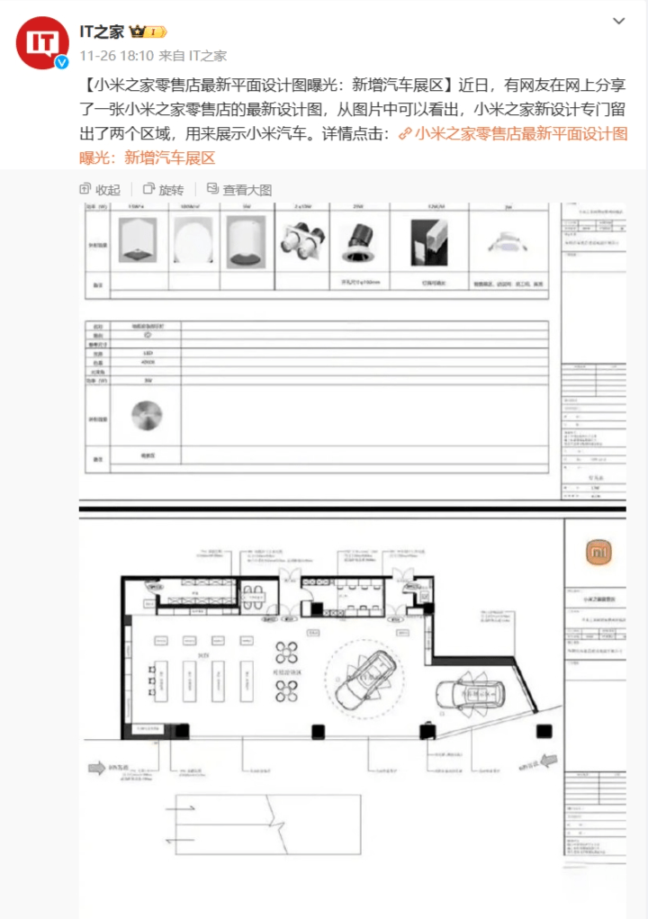 近日的一份爆料中显示了疑似的小米之家零售店最新设计图。