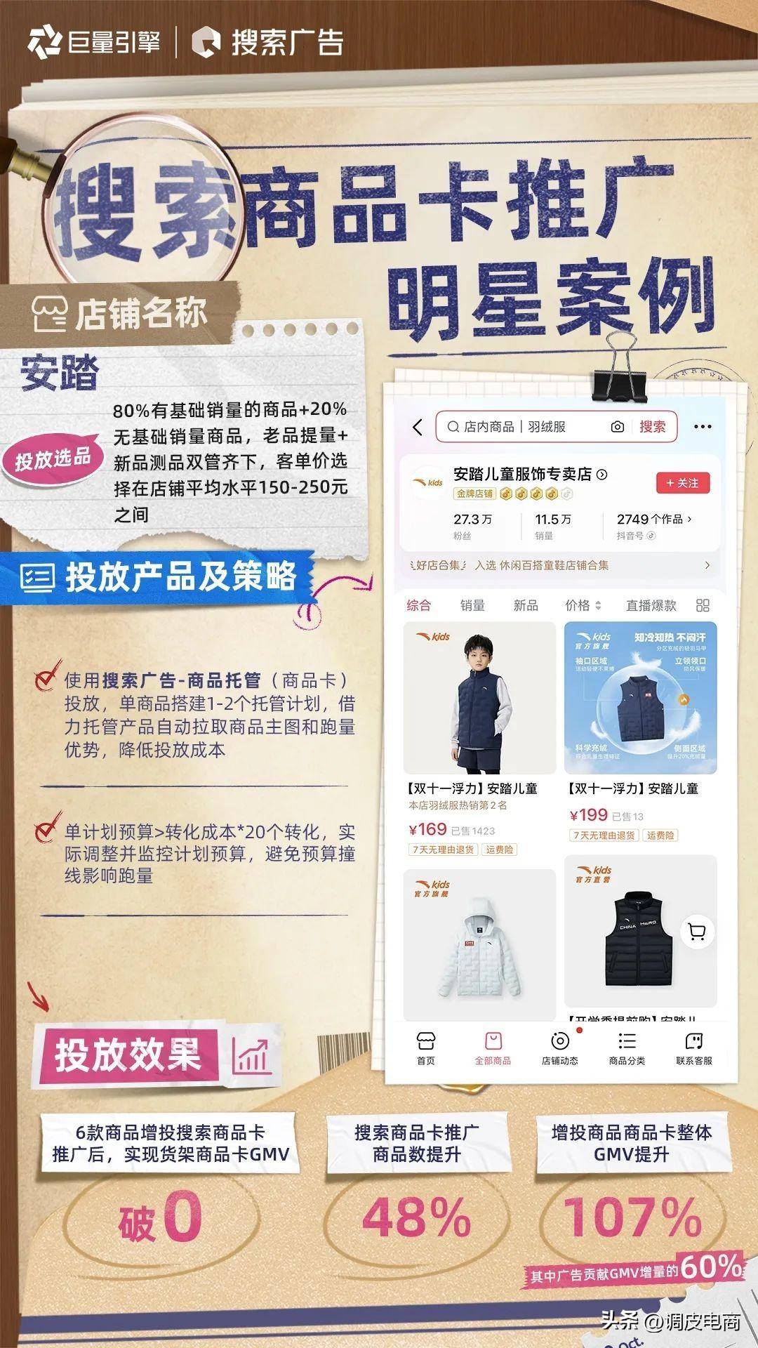 比如,对服装品牌安踏来说,款式多,上新也多,覆盖的用户需求也多,如果单独依靠一两款主推品引流就有局限性了。