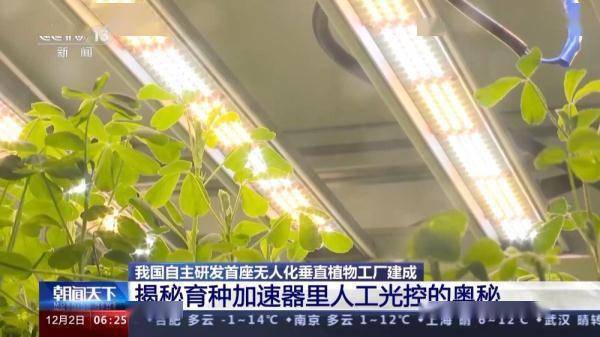 记者在垂直植物工厂里看到,作物上面密密麻麻布满了LED光源。专家告诉记者,这些人工光源,模拟和替代了自然光。而加快作物发育和育种过程,就是通过精准控制光的亮度和颜色来实现的。