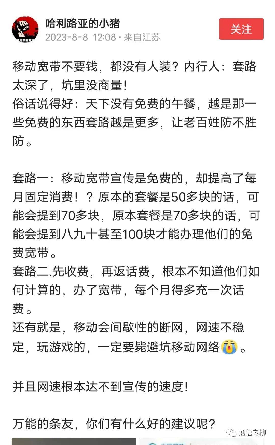 移动的宽带行不行,免费能有好货?网友:像女人的脾气