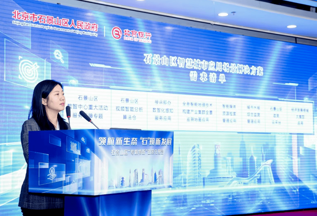 发布会上,石景山区经济和信息化局相关负责人在致辞中表示,石景山区高度重视智慧城市建设工作,以《石景山区“十四五”时期“智慧石景山”建设发展规划》为指引,持续推动智慧石景山建设。通过近几年努力,基本完成了基础网络、数据中台、支撑平台等基础设施建设,协同办公系统为各政府部门提供可靠高效的数字化服务,初步建立政务数据共享机制,汇聚全区20余个部门数亿条政务数据资源,并在城市管理、经济运行、公共安全、基层治理等领域开展应用。