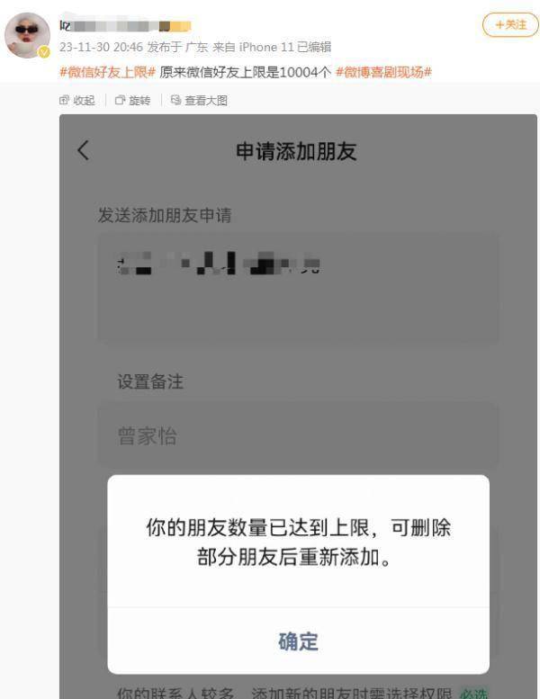 11月30日晚间,#微信好友上限#这一话题登上微博热搜第一,引发网友关注。