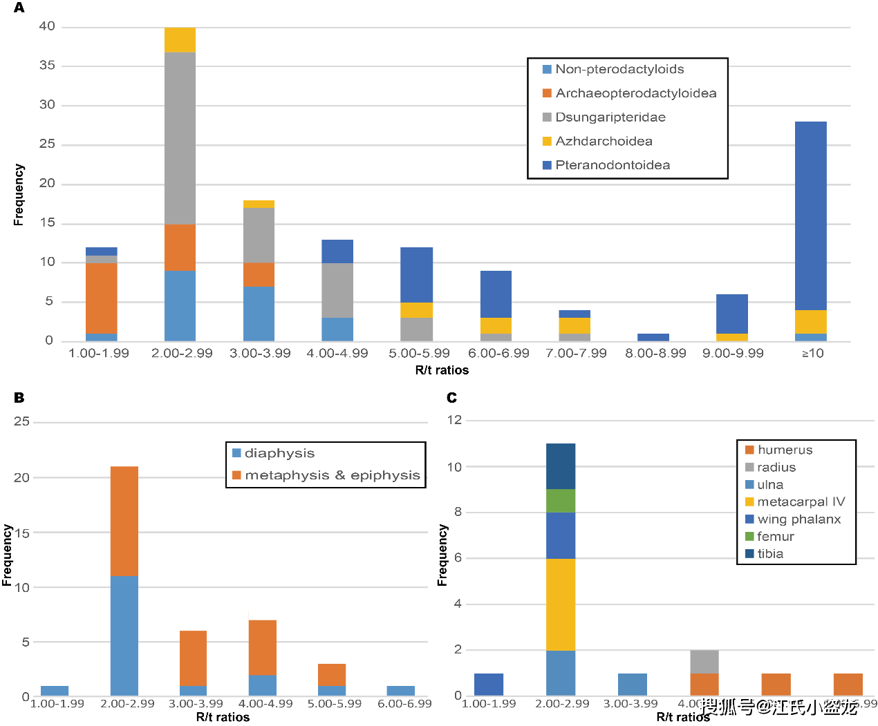 图注:翼龙类群骨骼相应厚度统计直方图,图片来自论文