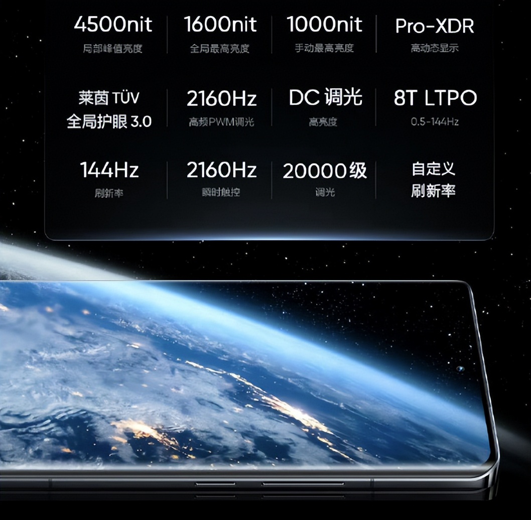 Redmi K70 Pro的屏幕为华星C8材质的2K屏,有着最高4000nit的峰值亮度,支持3840 PWM高频调光。真我GT5 Pro是联合京东方首发的无双屏,1.5K分辨率,局部峰值亮度4500nit、1600nit全局最高亮度,支持2160Hz高频调光,LTPO也安排上了。