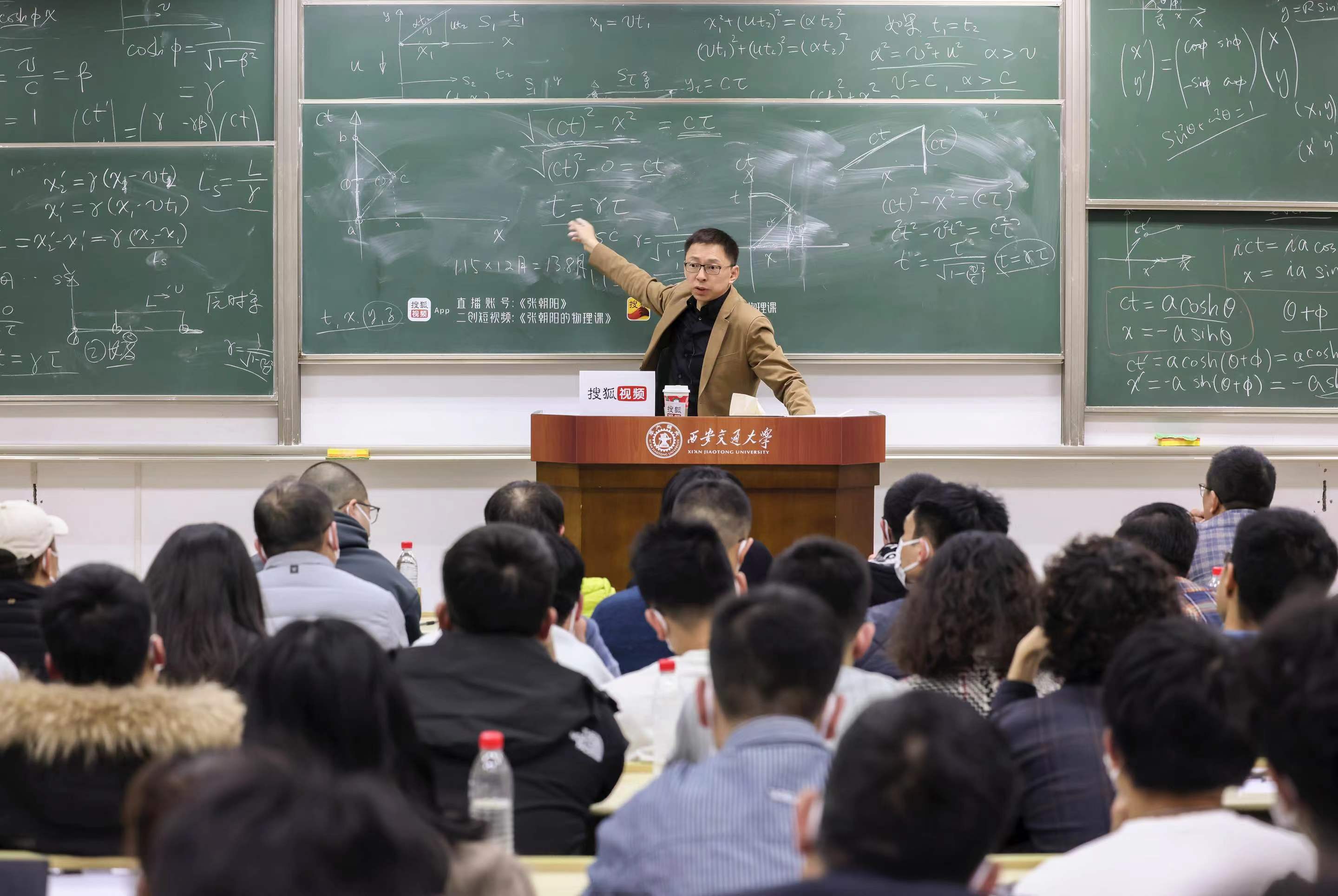 《张朝阳的物理课》高校专场系列西安站于12月2日下午,在西安交通大学开讲。本次演讲以“狭义相对论时空观”为主题,在演讲现场,搜狐创始人、董事局主席兼首席执行官、物理学博士张朝阳还解答了学生们关于西安“油泼辣子”“羊肉泡馍”等生活中的物理问题。