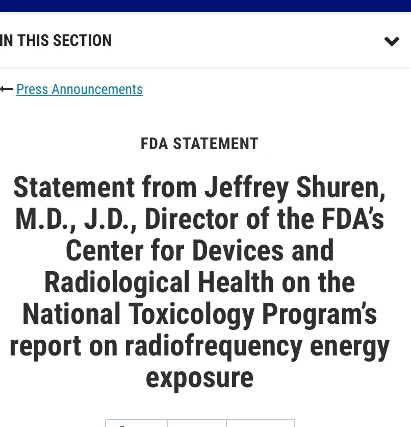 然而令人惊讶的是,另一个联邦卫生机构美国食品和药物管理局(FDA)却不同意这一结论。FDA设备和放射健康中心主任 Jeffrey Shuren 博士表示:“在审查了这项研究之后,我们不同意他们最终报告中关于暴露于射频能量的啮齿动物具有致癌活性的‘明确证据’的结论。”