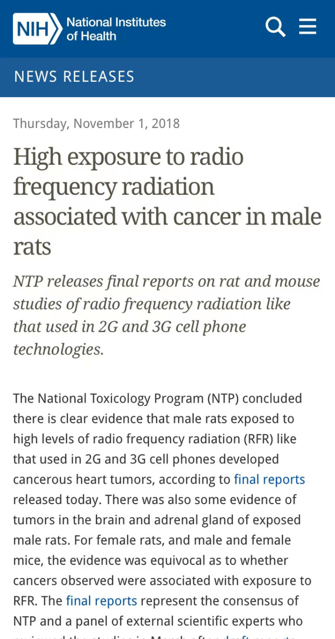 美国国立卫生院研究结果:癌症与手机辐射之间存在联系!但FDA为何反对这一决定?