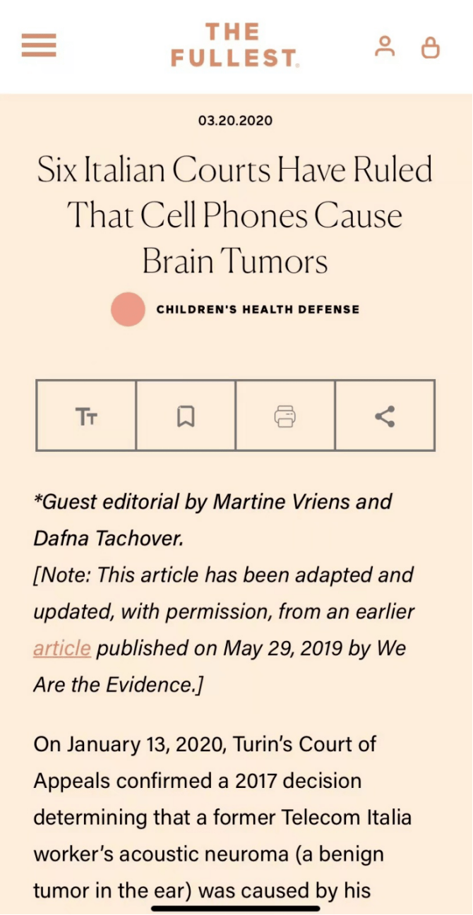 去年新冠疫情期间,意大利的法院还干了一件大事。都灵上诉法院确认了一项裁决,裁定一名前意大利电信员工的听神经瘤(耳朵中的良性肿瘤)是由使用手机引起的。