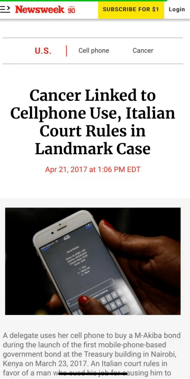 其后关于长时间使用手机可能患癌的研究,不断试图证明这一推断。
