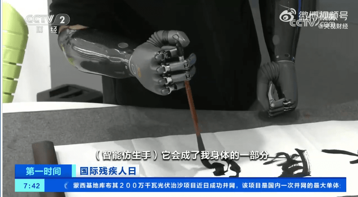 据报道,近日在第二届全球数字贸易博览会上,一款智能仿生手产品亮相。该产品可检测佩戴者的神经电和肌肉电信号,并可将佩戴者的运动意图转化为智能仿生手的动作。该产品使用者、残疾人跆拳道运动员倪敏成在受访时介绍,当自己和别人握手时,还能够通过智能仿生手来感受别人的动作和力量。
