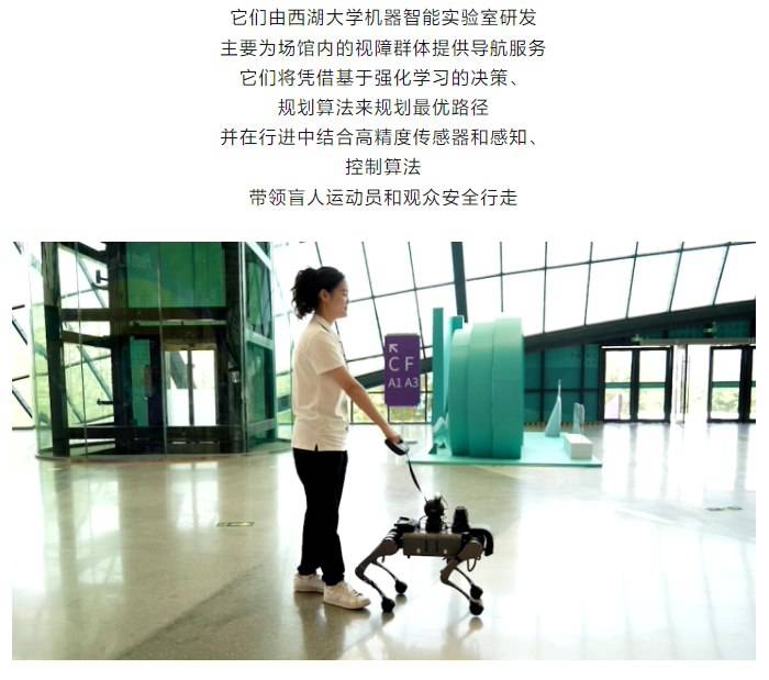 据IT之家此前报道,在今年 10 月的杭州第 4 届亚残运会期间,智能导盲犬、智能义肢等产品首次在大型赛会中现身。当时投用的智能导盲犬由西湖大学机器智能实验室研发,凭借基于强化学习的决策、规划算法来规划最优路径,并可在行进中结合高精度传感器和感知、控制算法,带领盲人运动员和观众安全行走。