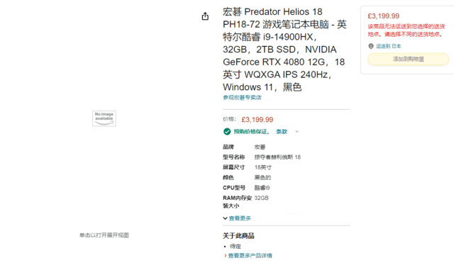 宏碁近日在亚马逊上架了一款新款掠夺者战斧 18 游戏本,该机搭载了酷睿 i9-14900HX 处理器和 RTX 4080 独显。据预估,其定价约为28991元人民币。