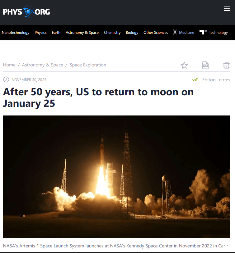 IT之家 12 月 3 日消息,据物理学家组织网近日报道,在上一次“阿波罗”登月计划结束 50 多年后,美国将于 2024 年 1 月 25 日再次尝试登月。