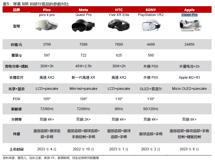 方竞等人表示,苹果Vision Pro在硬件配置和功能实现上远超竞品。Vision Pro 此番搭载的IPD调节显著改善屈光度和成像质量,远期有望成为行业主流。交互方式上,其搭载12个摄像头+5个传感器+6个麦克风,用户只需简单的注视app后用手势交互,重新定义交互范式,有望引领后续交互领域创新。此外,眼动追踪技术能大幅提升交互体验,使得应用从B端走向C端。