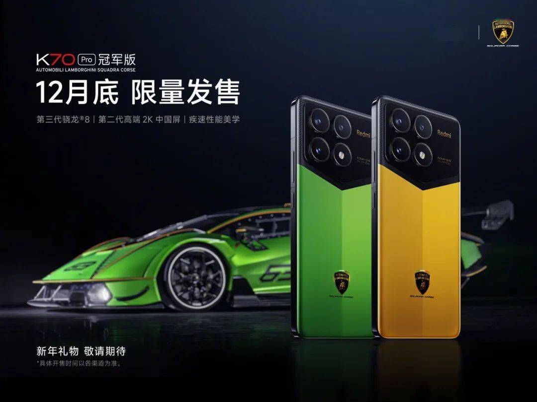 本周三红米发布了K70系列,其中K70 Pro带来了一个特别版本:K70 Pro冠军版,联名兰博基尼汽车 SQUADRA CORSE,预告将作为十周年新年礼物限量发售,现在更具体的发售时间也有了。