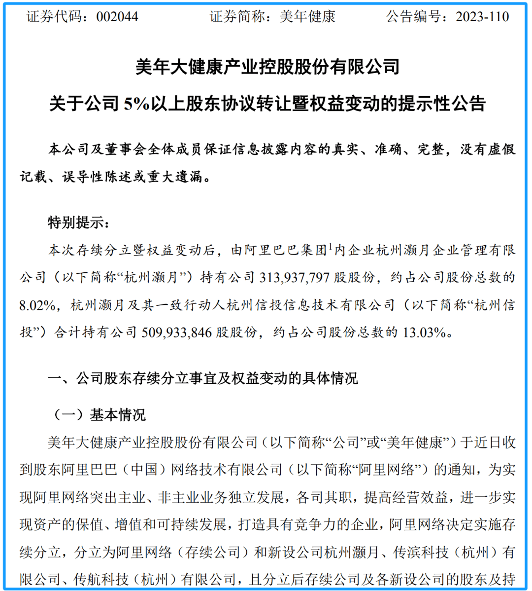 继圆通速递、美凯龙、丽人丽妆后,又有多家公司官宣阿里网络因存续分立向一致行动人协议转让股份。