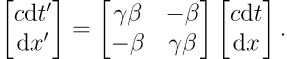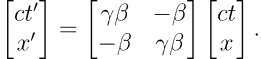 应用双曲三角函数的关系,可以写出矩阵形式的时空变换: