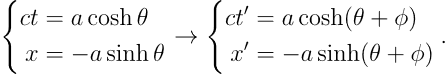 这种不同于三角函数的特性使得双曲三角函数可以自然地用于表达时空分量。转动带来的效果同样也需要进行调整为