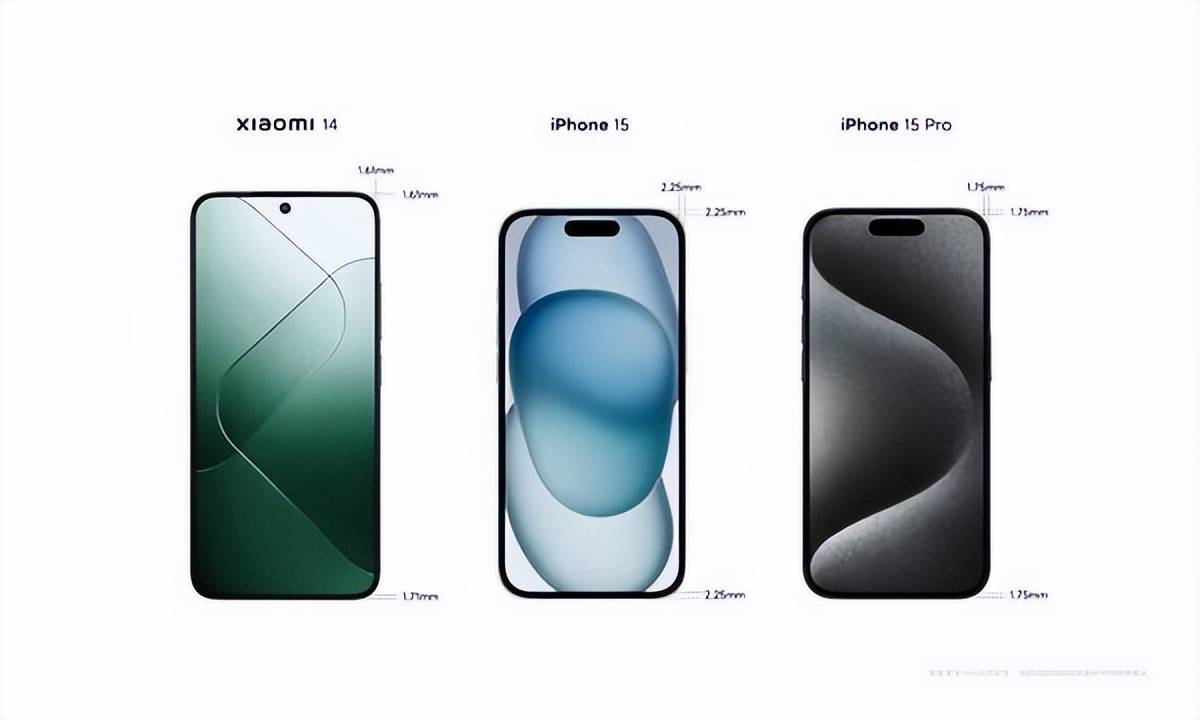 去年发布的iPhone14/14Plus和iPhone14Pro/ProMax,边框分别是2.4mm和2.15mm。到了iPhone15/15Plus和iPhone15Pro/ProMax,边框分别为2.25mm和1.75mm。明年的iPhone16系列,边框势必会更窄。