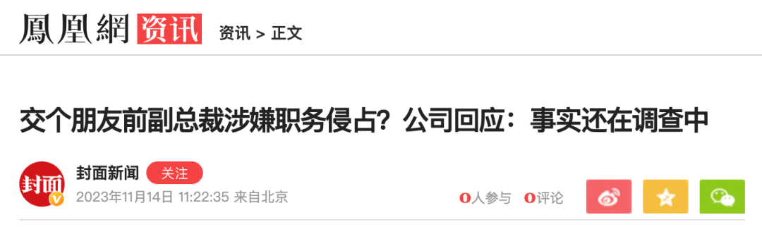 先是新浪科技报道称,事件当事人已从 “ 交个朋友 ” 公司离职,其涉嫌职务侵占部分,公司会做进一步调查处理。
