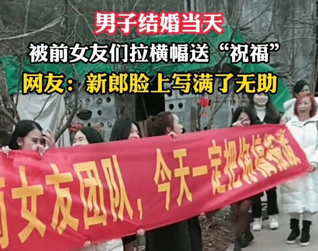 远的不说,今年二月份,贵州的一个婚礼现场中,多位女性拉了一个 “ 我们是 XX 前女友团队,今天一定把你搞报废 ” 的横幅。