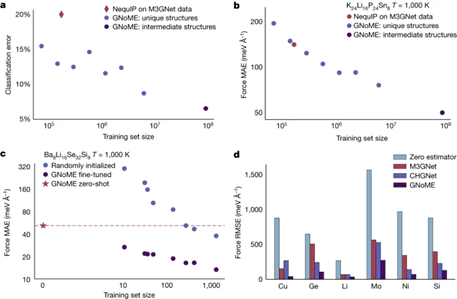 简单来说,可以把GNoME看成材料发现界的“AlphaFold”模型,同时证明了海量的第一性原理计算为模型学习原子间势提供了支持,并实现了之前从未有过的精度和泛化能力。