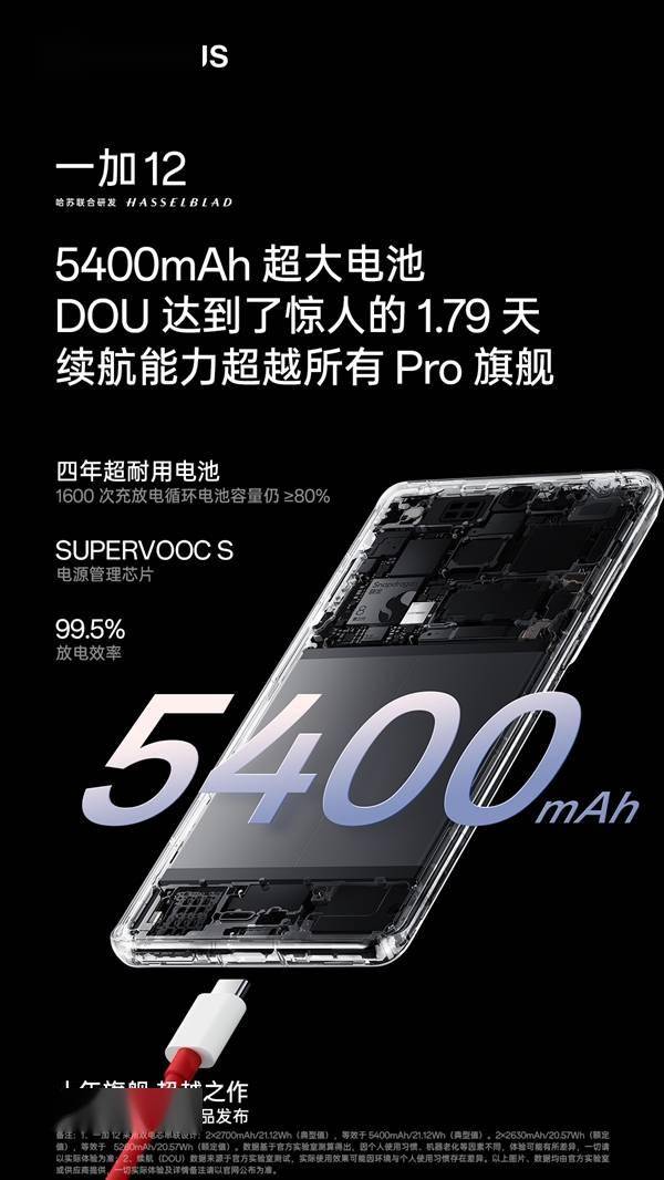快科技12月4日消息,据一加官微消息,一加12配备了5400mAh超大电池,一加科技李杰发文表示,一加12续航只能用“惊艳”来形容。