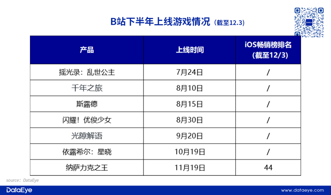 DataEye研究院不完全统计指出,整理了B站2023下半年的产品:
