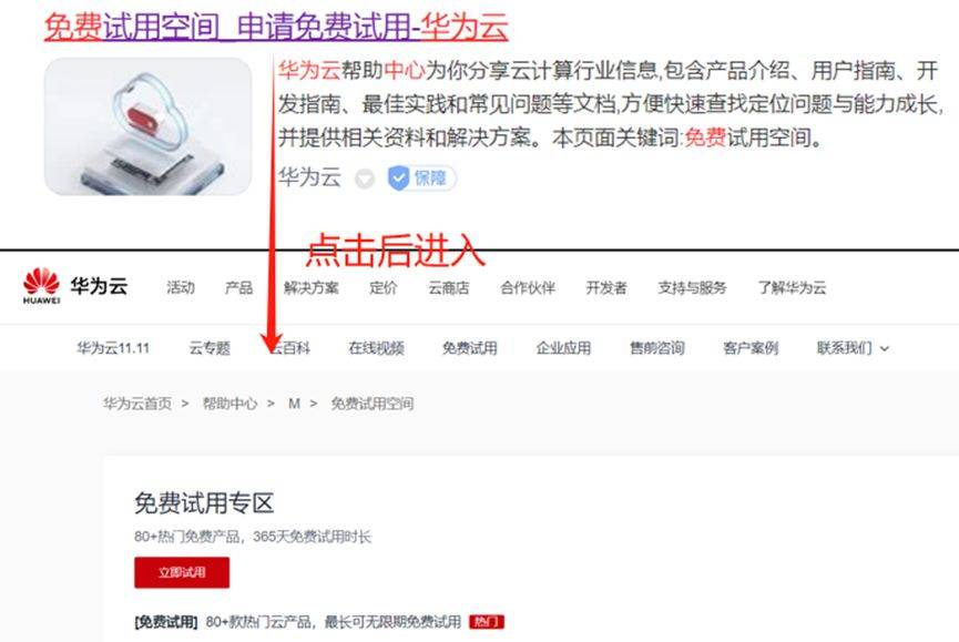 【免费试用教程】网页搜索“华为云免费体验中心”进入官网后,就可以免费领取100+产品。都是可以先用后买,试用后购买还能享受新客特惠,而且享受双11大促活动的新客特惠价,非常有诚意。