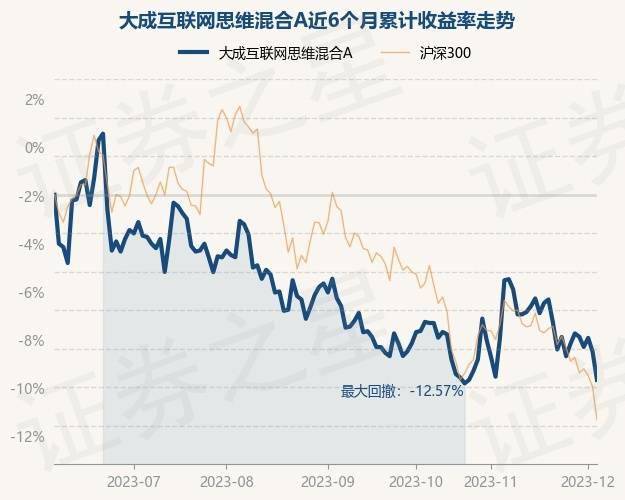 证券之星消息,12月5日,大成互联网思维混合A最新单位净值为1.532元,累计净值为1.532元,较前一交易日下跌1.61%。历史数据显示该基金近1个月下跌2.36%,近3个月下跌4.49%,近6个月下跌9.62%,近1年上涨13.23%。该基金近6个月的累计收益率走势如下图: