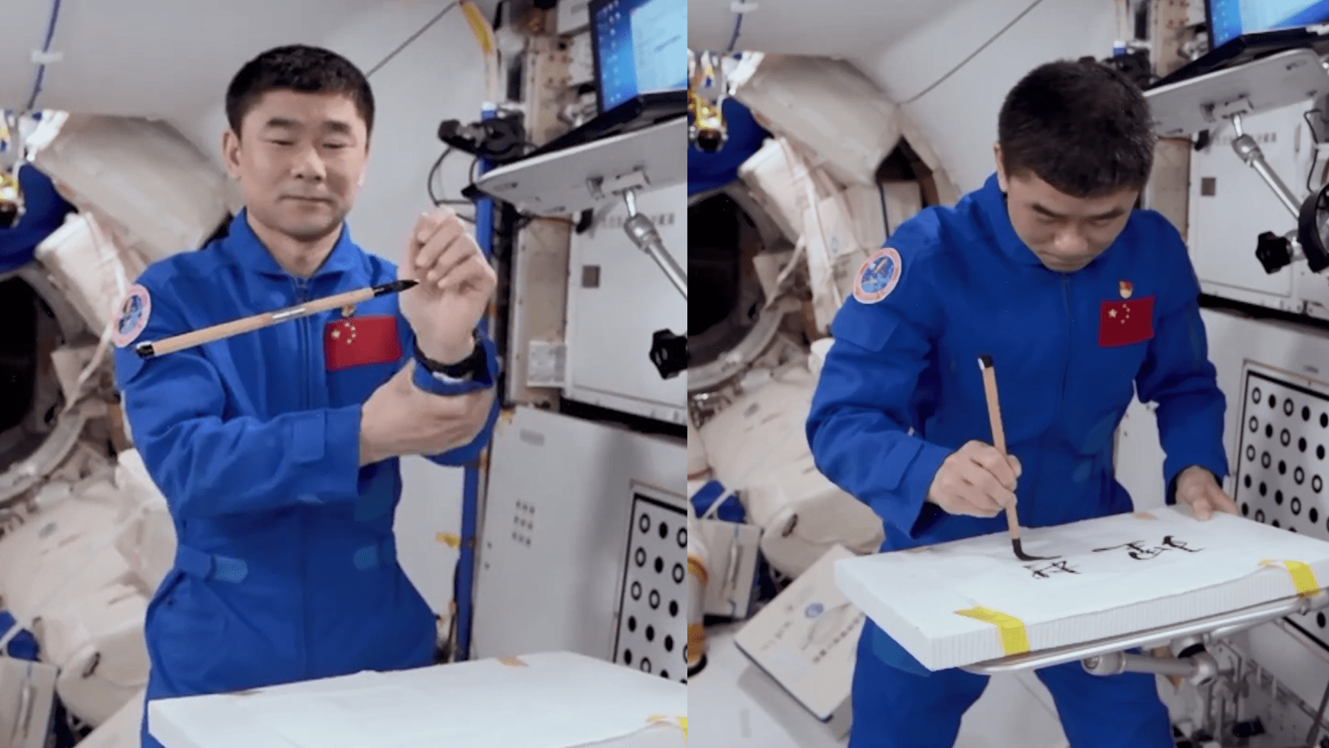 中国航天员秀空中毛笔书法的科技含量:融合航天技术和书法艺术